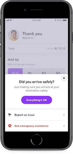1. Smart Trip Check-In: Predicting when someone needs help. If a ride looks to have unexplained delays, riders and drivers will hear from us asking if they need support from our team — and if necessary, request emergency assistance. This feature was built using data from millions of trips, and will roll out this year.