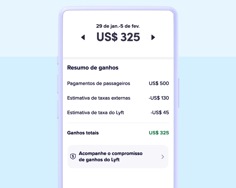 Para saber mais detalhes sobre como funcionam os ganhos com o Lyft, assista a este tutorial interativo.