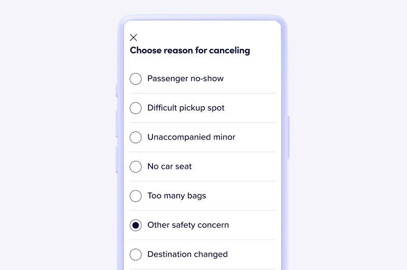 When you cancel a ride for a safety reason, your acceptance and cancellation rate won’t be affected.