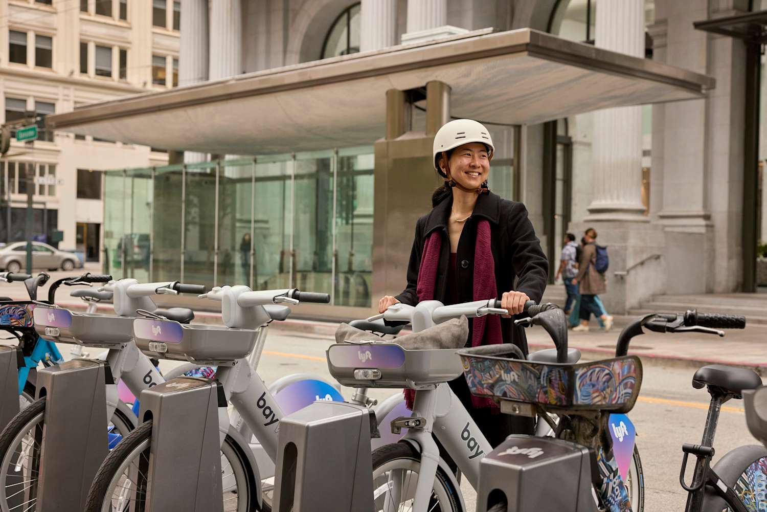 Pick out a bike, and use the Lyft app or your Clipper card to scan its QR code. Unlock it.