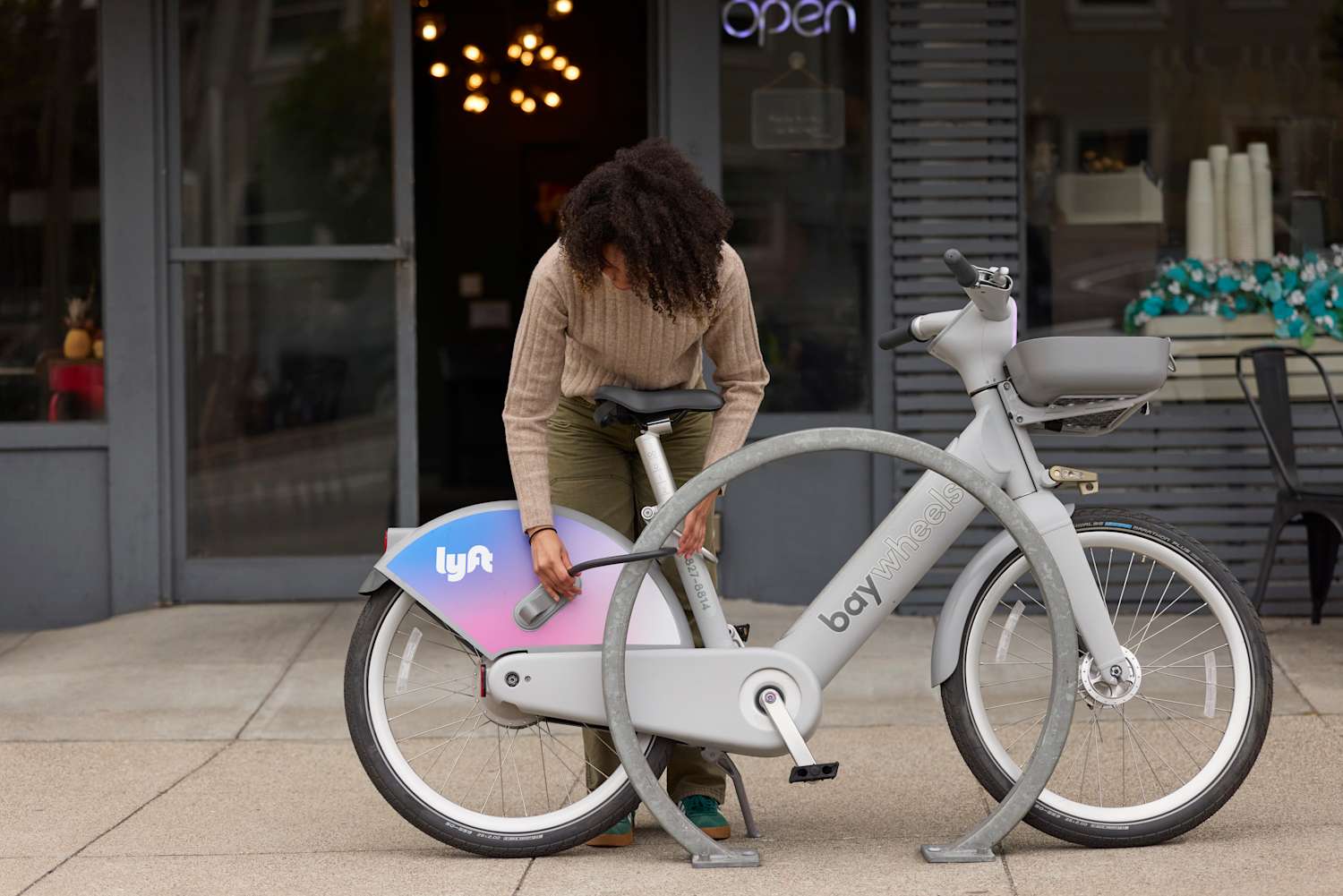 Pick out a bike, and use the Lyft app or your Clipper card to scan its QR code. Unlock it.