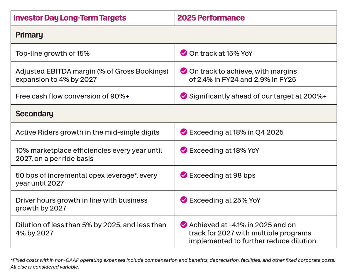 Beyond our long-term targets, Lyft also hit all-time highs across many metrics, especially when compared to where we were one year ago.