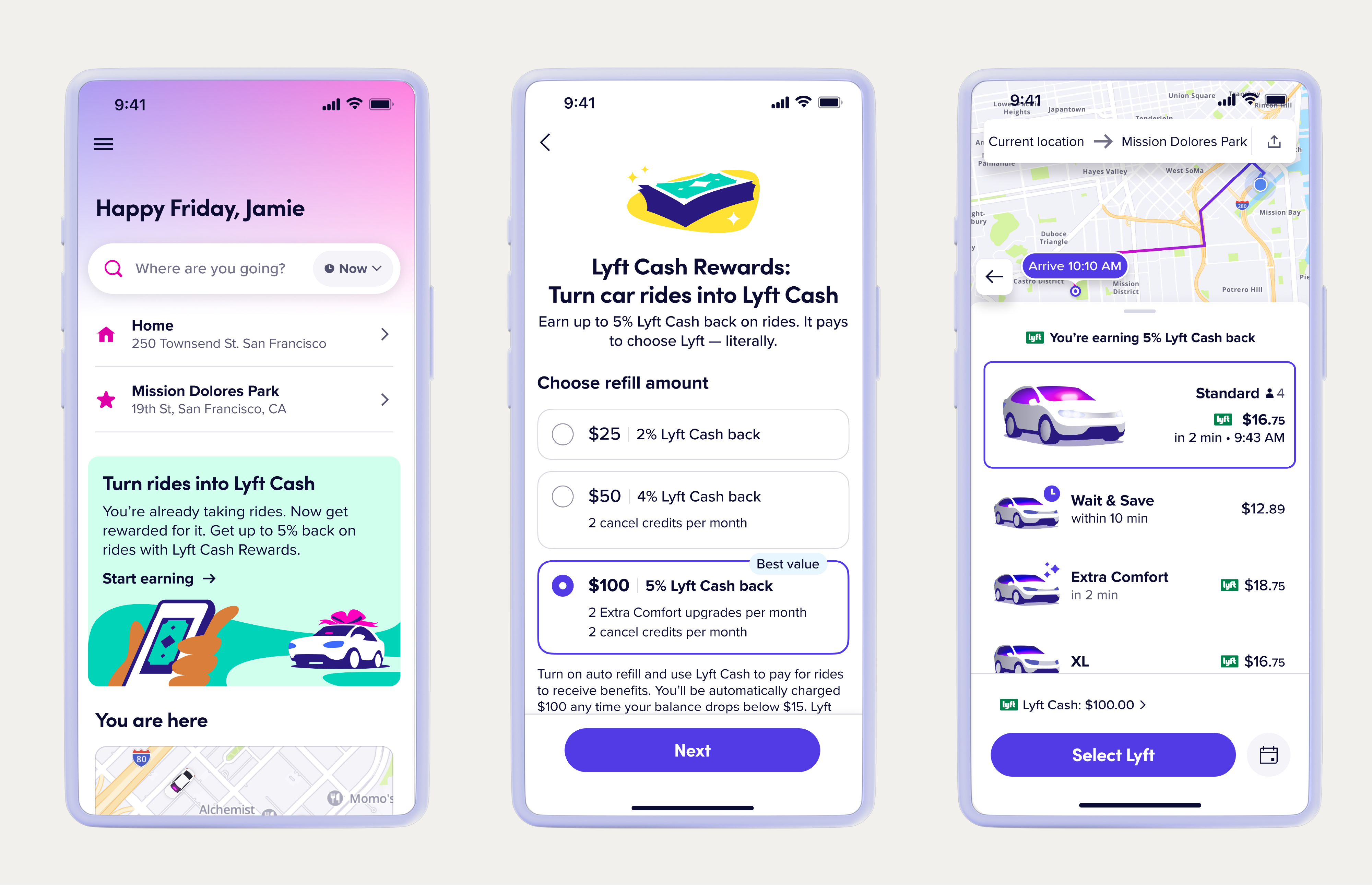 To help our frequent riders save (up to $456 annually — so they can schedule that XXL with ease), Lyft has created a loyalty program: Lyft Cash Rewards.