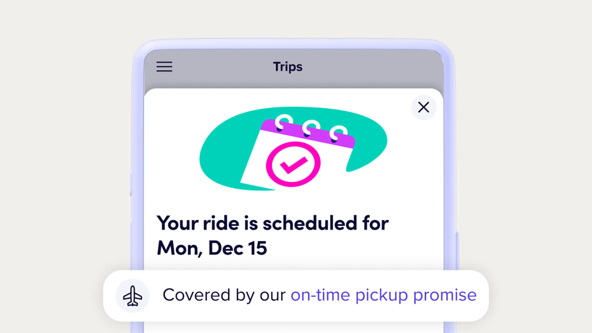 However, 86% of people surveyed by Lyft also felt that using rideshare, instead of driving themselves, is “worth it” during the holidays. Here’s our tip to make it even easier: To ensure you get to the airport on time, schedule your ride to the airport (ideally more than 24 hours before your flight), and give yourself plenty of wiggle room in case of traffic. Your driver will be there within 10 minutes of your pickup time — and if not, you’ll get up to $100 in credits.