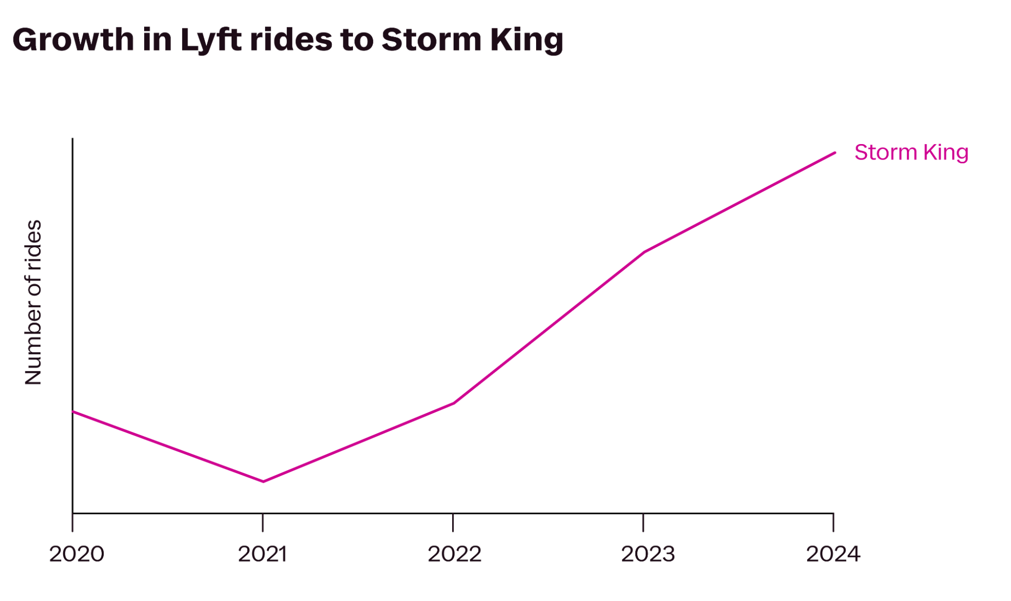 Another “big one,” according to Dana, is Storm King Art Center, the outdoor sculpture museum. According to Lyft data, rides to Storm King are 150% of their pre-pandemic levels, and 25% of all rides there come from stations on Metro-North, suggesting that rideshare has opened up Storm King to visitors who may have been daunted by taking the bus or transferring. “Arts and culture tourism is on the rise,” reflects Dana, “and the Hudson Valley seems to be the heartbeat of it.”