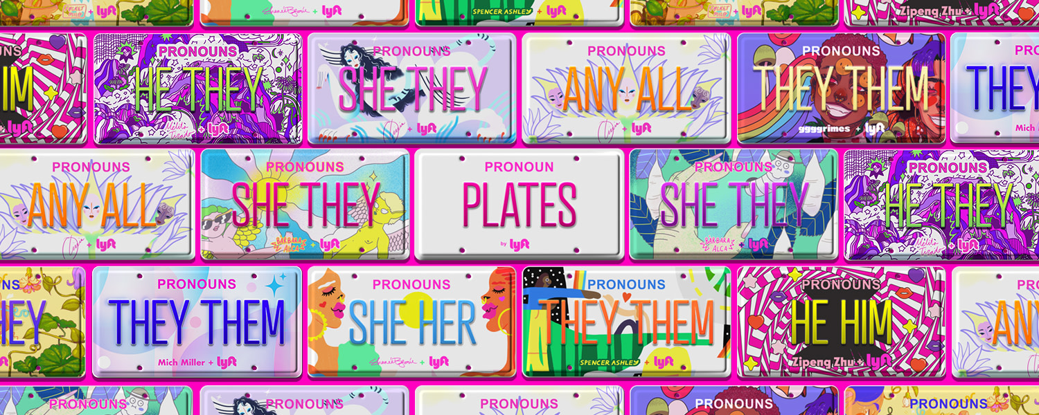 October 20 is International Pronouns Day. To celebrate, Lyft is launching an awareness campaign in partnership with several LGBTQ+ artists. Each artist created license plates featuring custom art and the artist’s personal pronouns. The “Pronoun Plates'' designs reflect the artists’ relationships with their own pronouns. The campaign includes short films with a few of the artists discussing their designs and telling their own stories. More details on participating artists can be found at the bottom of this blog post.