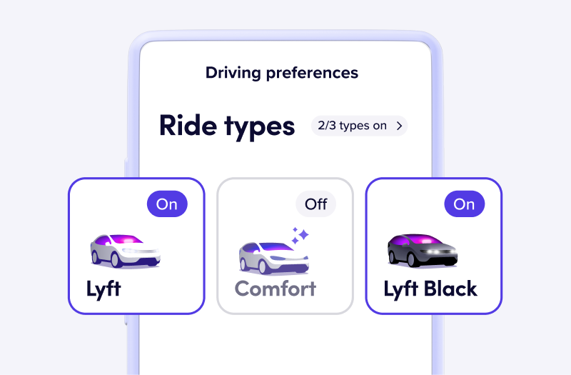 Easily choose the exact ride types you want to drive. Change your selection at any time to better align with your goals.4