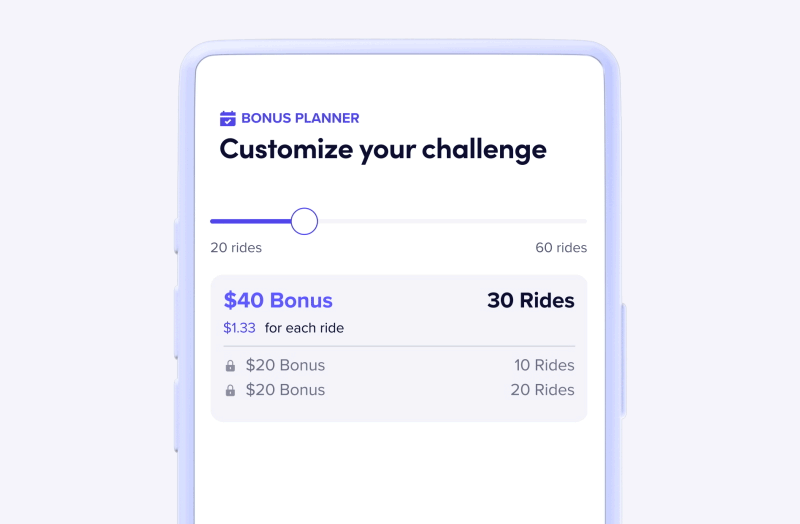 Pick the exact number of rides you want to complete.3 The bigger your goal, the bigger your bonus per ride.