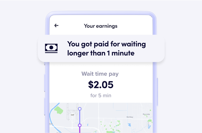 You’ll start earning wait time pay after just one minute.1 And pay will be higher if the ride has a Turbo bonus.
