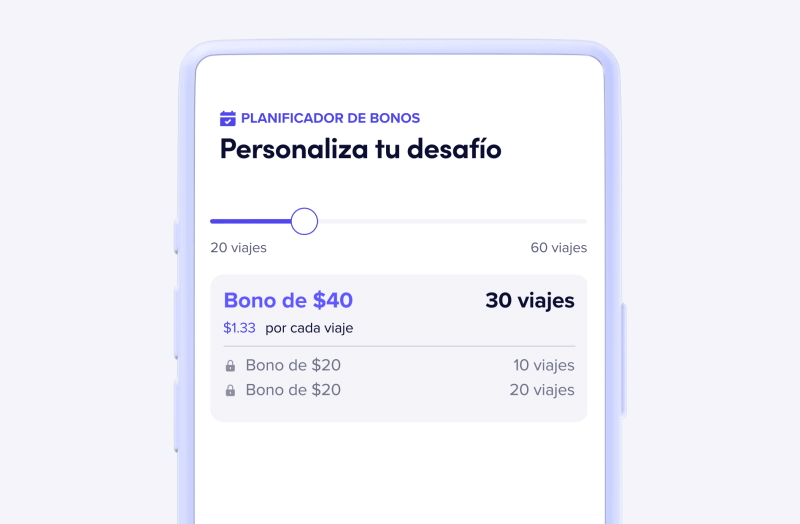 Elige el número exacto de viajes que deseas completar.3 Cuanto mayor sea tu meta, mayor será tu bono por viaje.