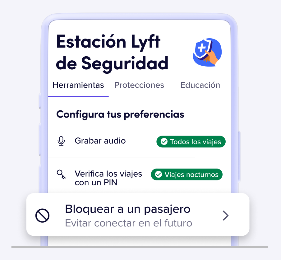 Aprende sobre las medidas de seguridad siempre activas y personaliza tus herramientas de seguridad todo en un solo lugar—incluidos los descuentos en dashcams, bloquear a un pasajero y más.