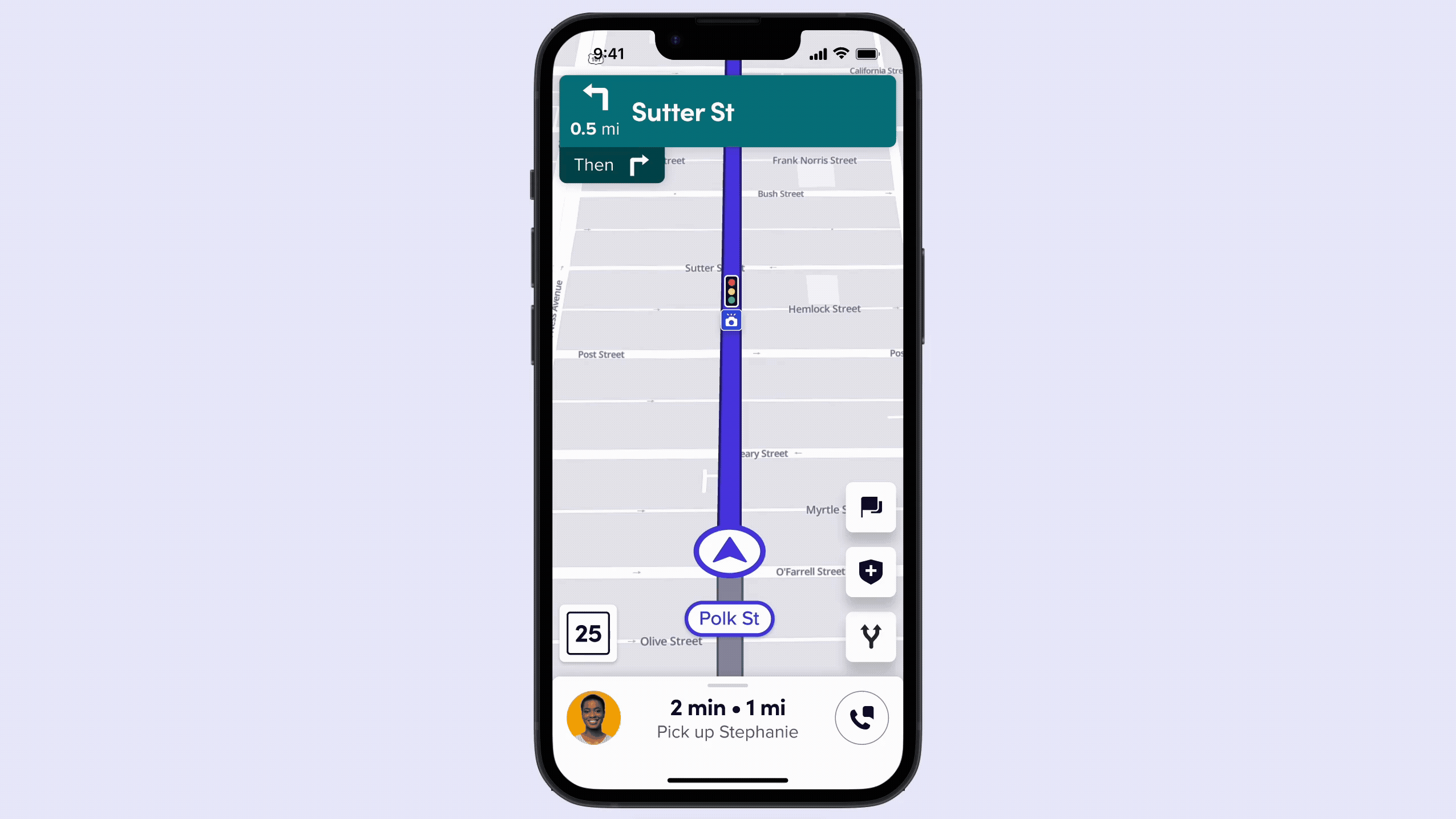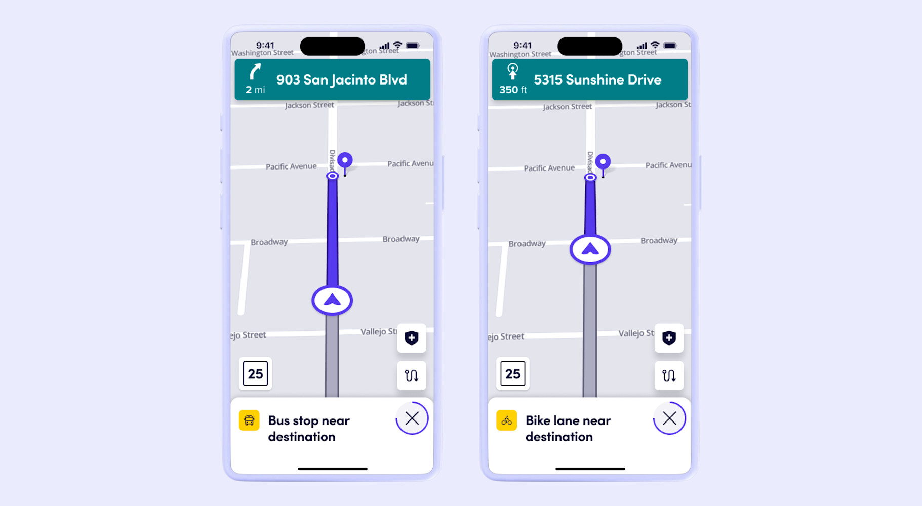 Receive alerts about bus stops and bike lanes when picking up and dropping off riders.