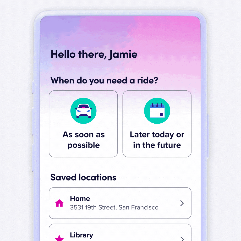 Pick a ride for now or schedule one for later
